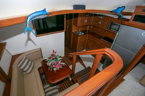 Nuestro yate Hatteras de 44 pies es la elección perfecta para los amantes de la pesca deportiva en alta mar. Diseñado específicamente para brindar una experiencia excepcional en la pesca, este barco cuenta con una amplia plataforma de pesca en popa, espacio para cañas de pescar, sillas de combate y todas las comodidades que necesitas para una jornada emocionante en el agua. Equipado con avanzados sistemas de navegación, nuestro Hatteras 44 pies te lleva a las mejores ubicaciones de pesca. ¡Prepárate para aventuras inolvidables de pesca en un ambiente de lujo y comodidad!